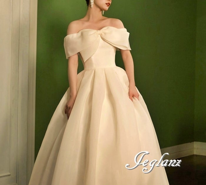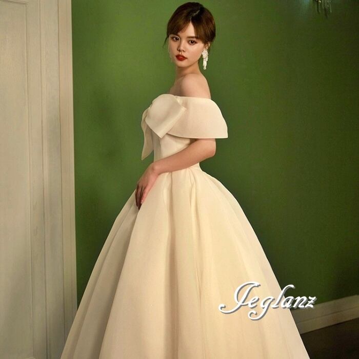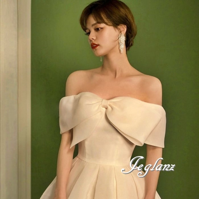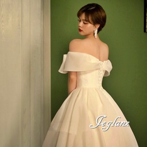 サテン ウエディングドレス オフショル 背中 編み上げ ミニマル(M7232)ο