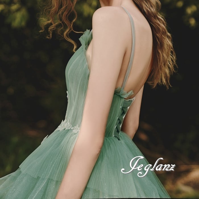 パーティ イブニングドレス バタフライ 蝶 モチーフ 背中 編み上げ(M7250)ζ