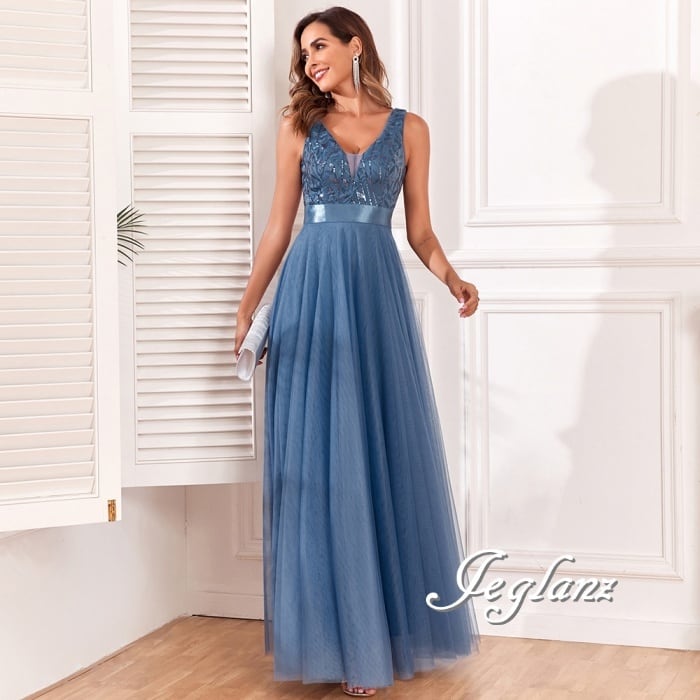 パーティ イブニングドレス ノースリーブ チュール 背中開き 光沢 4色(M7411)ζ