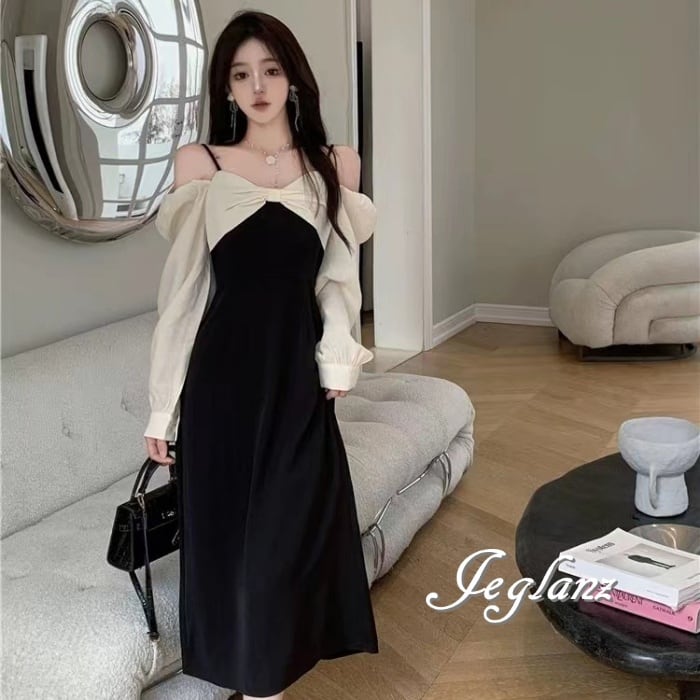 パーティ ドレス ワンピース 配色 リボン 大きいサイズ (M7607)ζ