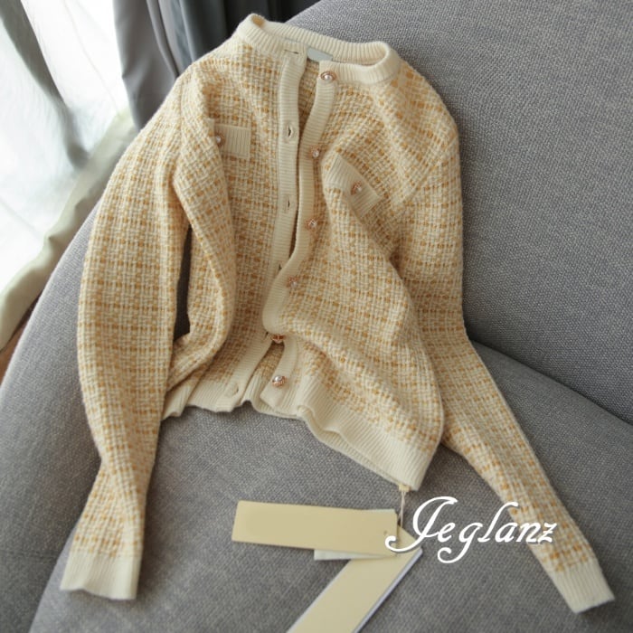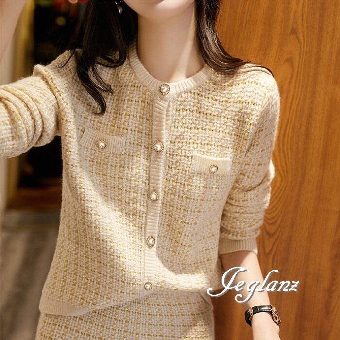 セットアップ 2点 ツイード ニット カーディガン ひざ上 スカート(M7694)λ