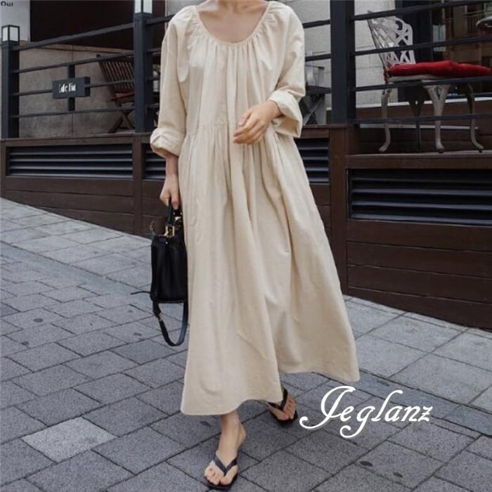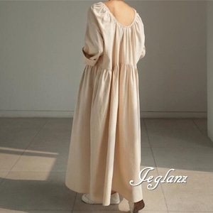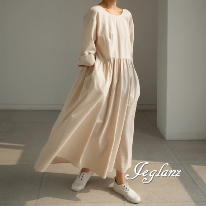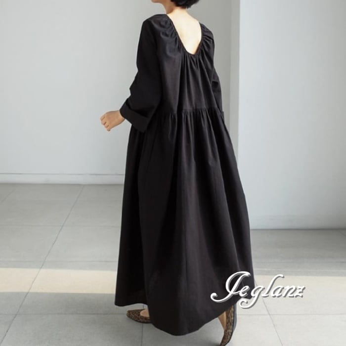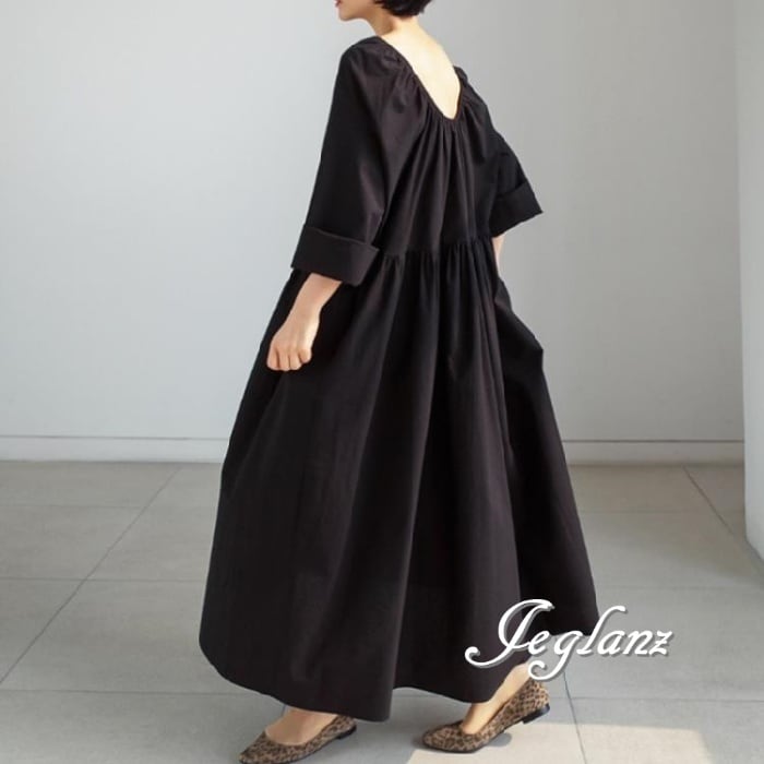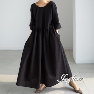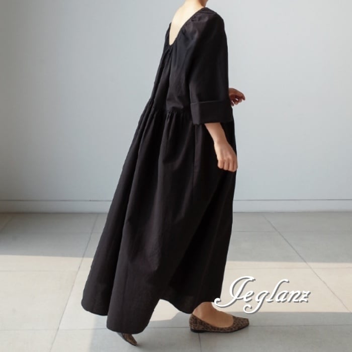 マキシ ギャザー ワンピース ドレス ゆったり カジュアル派 2色(M7730)γα