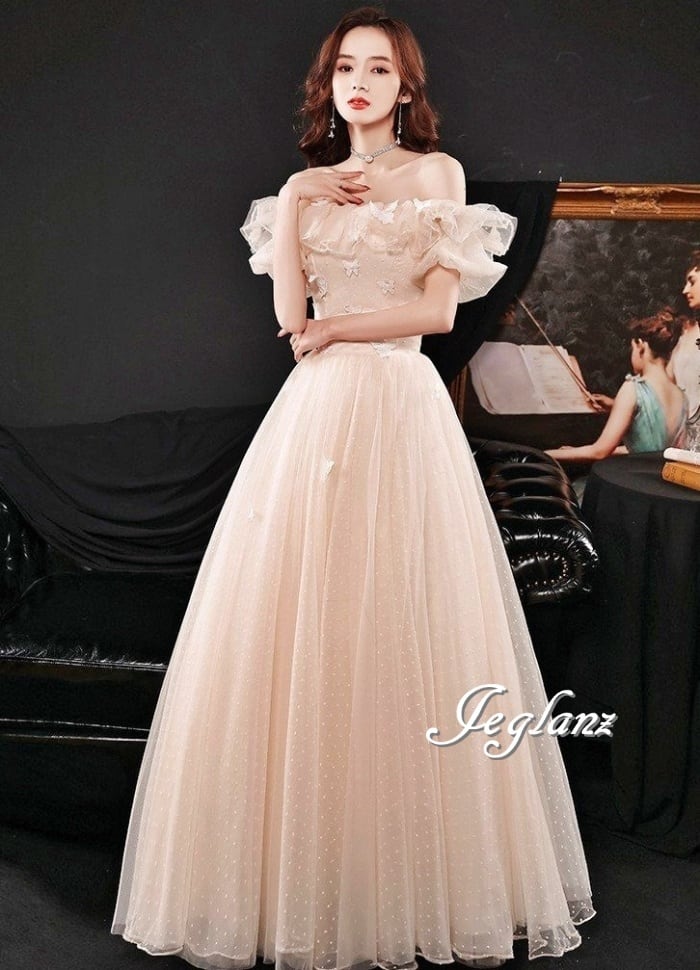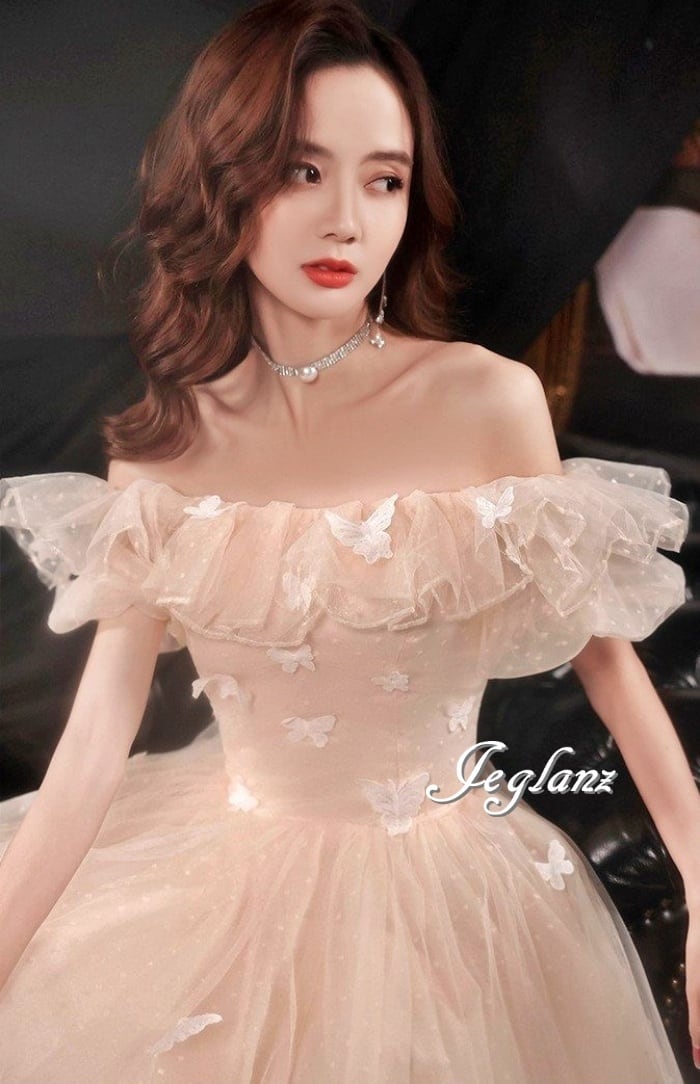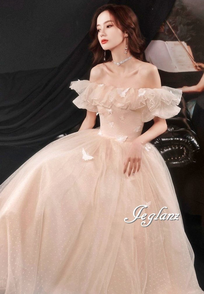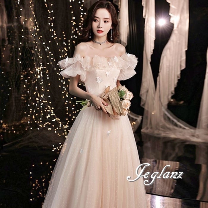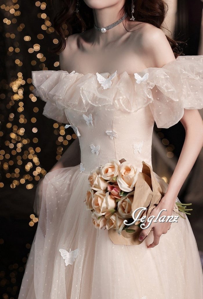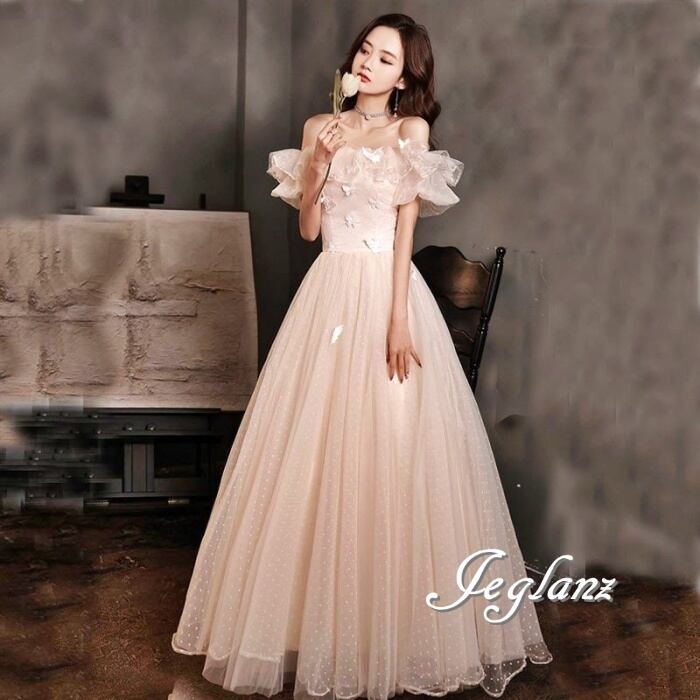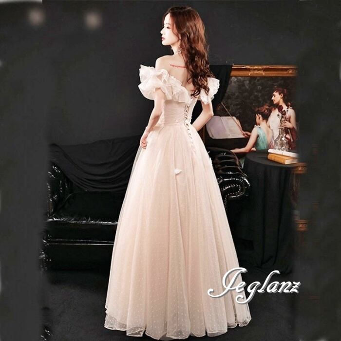 パーティ イブニングドレス 蝶 バタフライ オフショル 背中 編み上げ フリル(M7851)π