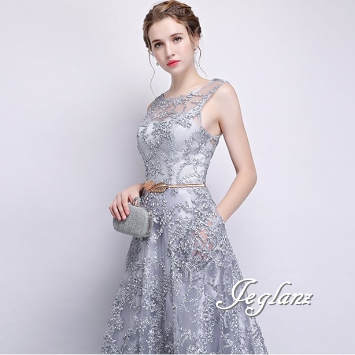 美ライン パーティ イブニングドレス 袖なし モチーフ 透け感 3色(M7883)ζ