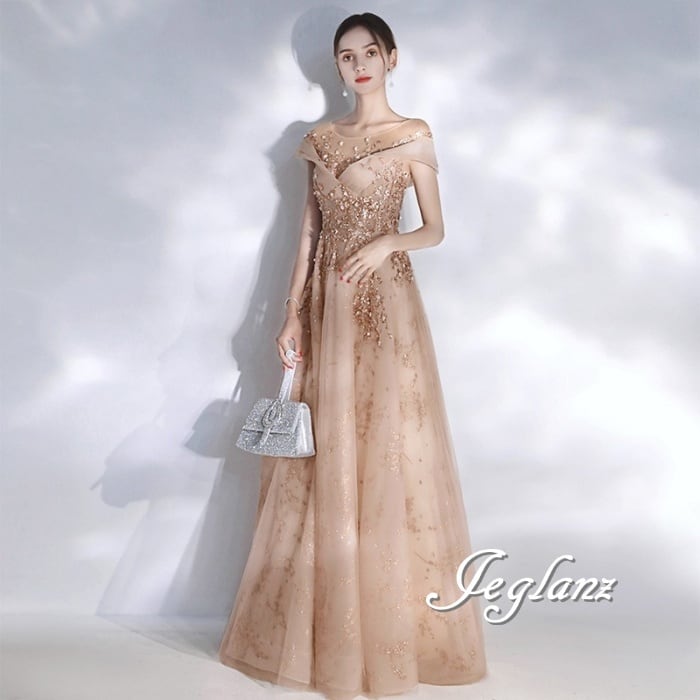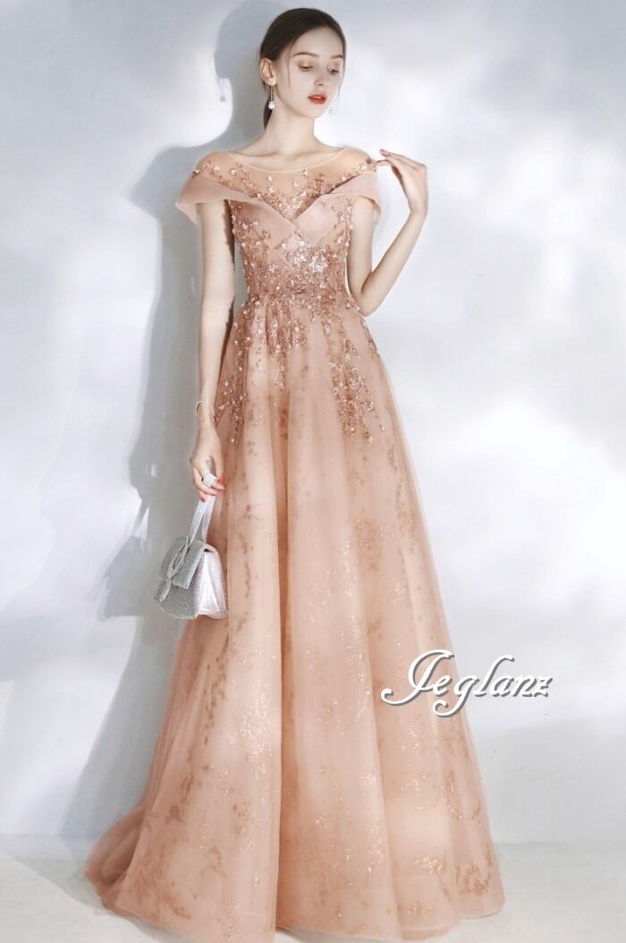 パーティ イブニングドレス 背中 編み上げ チュール 透け感 2色(M7884)ζ