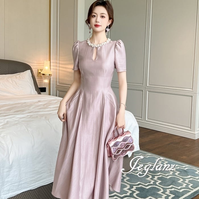 パール付き パーティドレス ワンピース ティアドロップ 3色(M7934)ζ