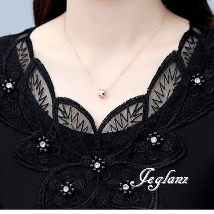 セミフォーマル ワンピース ブラック ドレス パール付き 透け感 上品(M8009)ζ