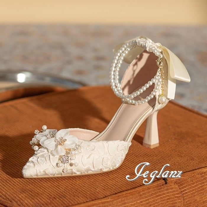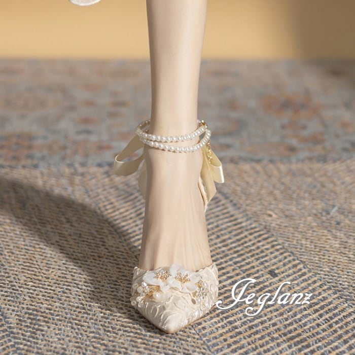 ウエディング パーティ ハイヒール リボン パール ストラップ ♪(M8187)χ