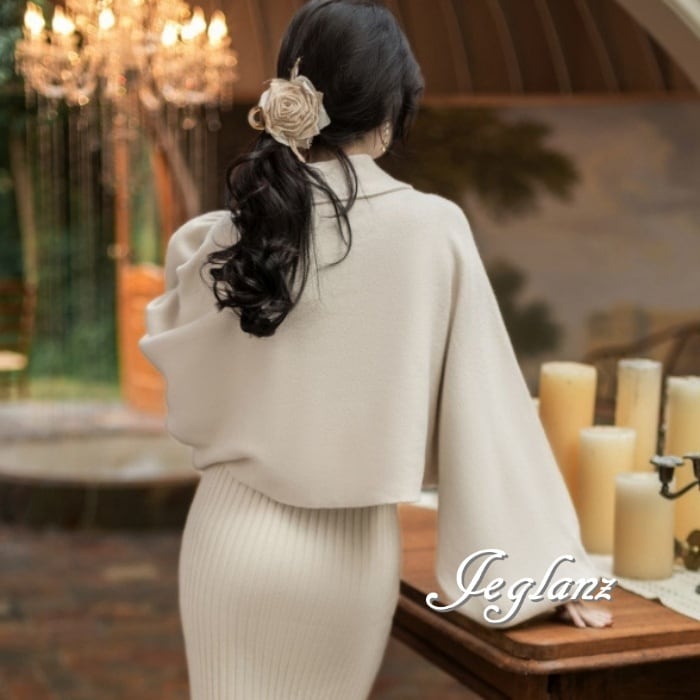 セットアップ 2点 ニット ボリューム袖 ジャケット ノースリーブ ワンピース(M8195)λ