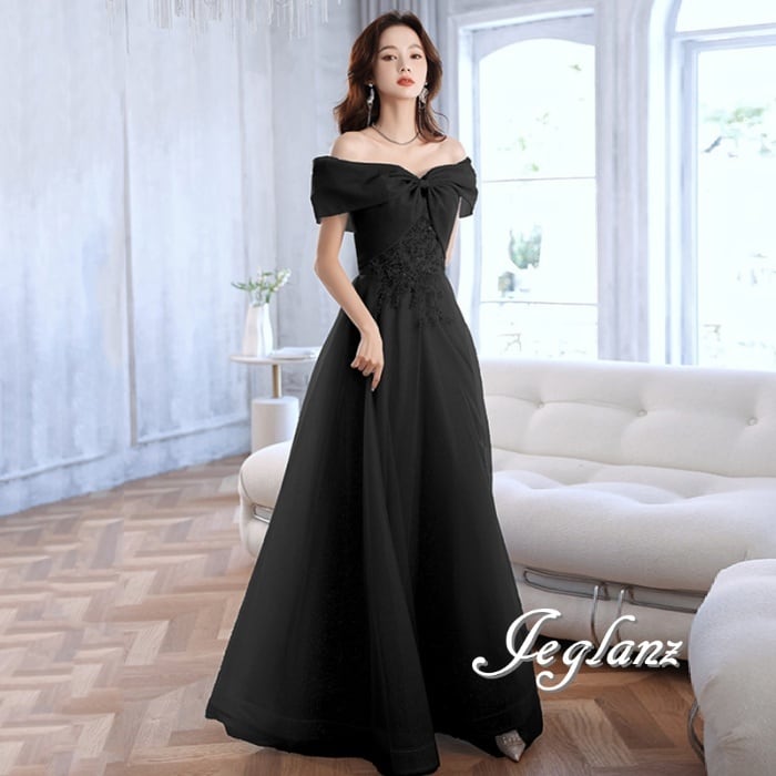 3色 パーティ イブニングドレス オフショル 背中 編み上げ ラメ 光沢感(M8277)ζ