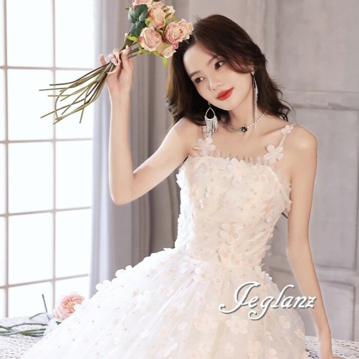 パーティ イブニングドレス キャミソール 花モチーフ チュール(M8386)ζ