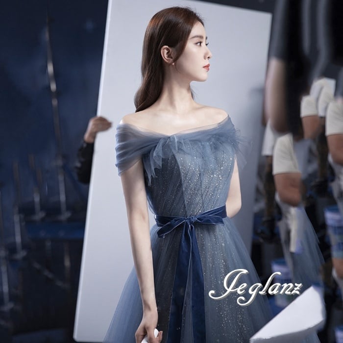パーティ イブニングドレス オフショル バックシャン ラメ 光沢感(M8411)ζ