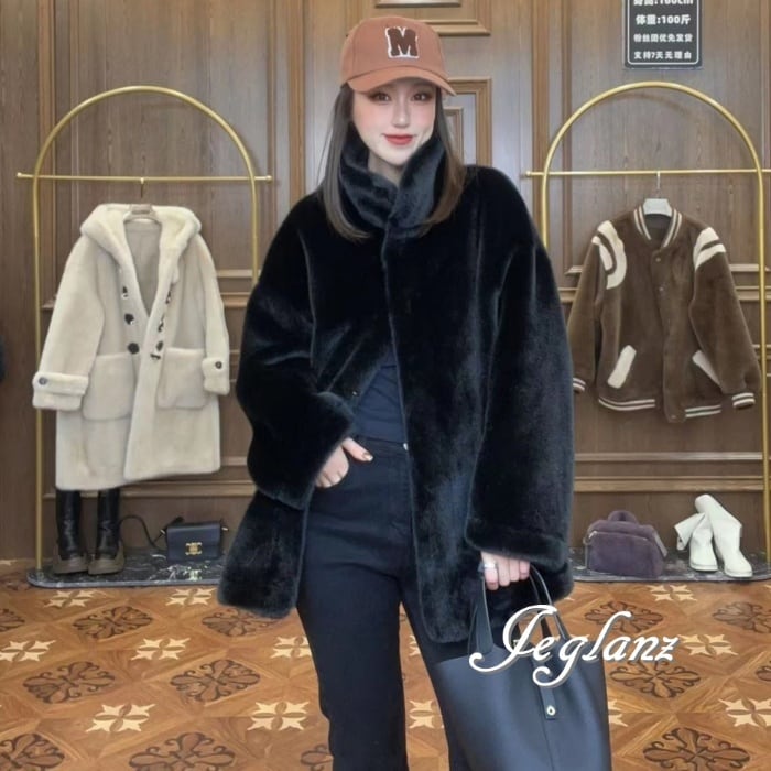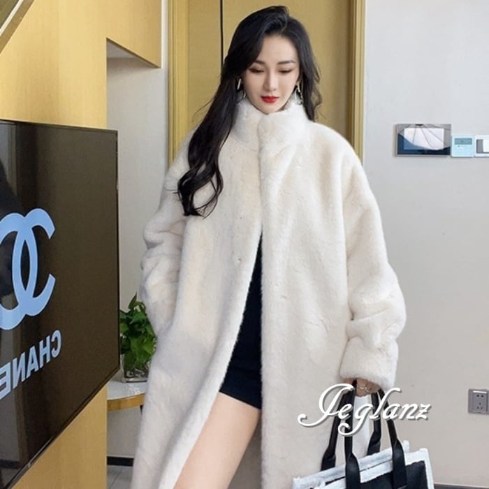 5色 ファーコート エコファー スタンドカラー ウォーム感 ミドル/ロング(M8501)φ