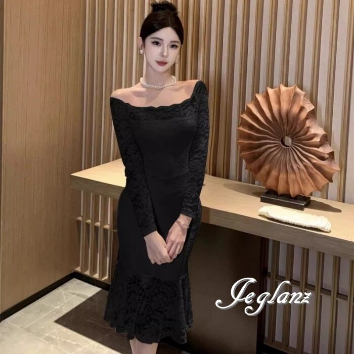 総レース パーティ ワンピース オフショル マーメイド エターナル 2色(M8517)ζ