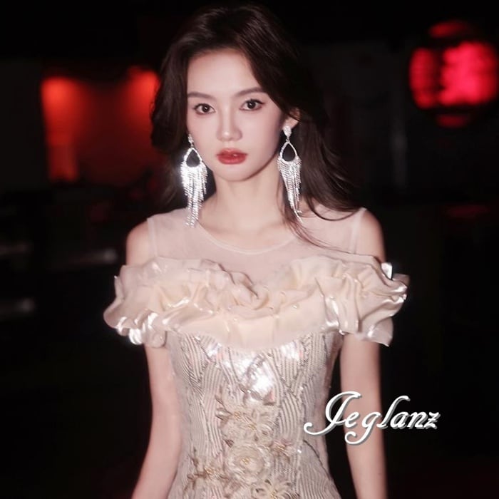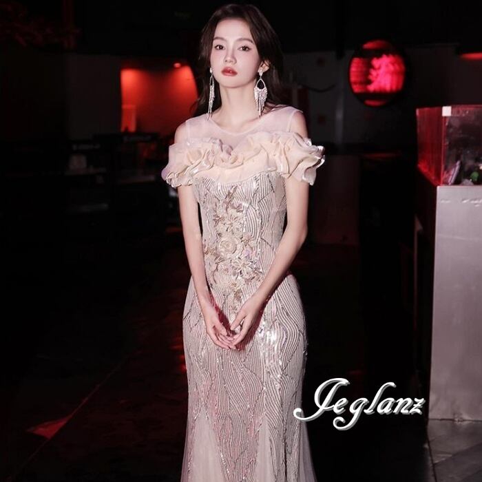 華やか パーティ イブニングドレス パール スパンコール 光沢感(M8524)ζ