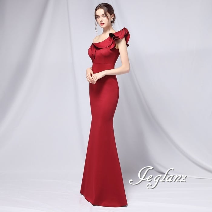 美ライン パーティ イブニングドレス 立体フリル ワンショル 肌見せ 6色(M8563)ζ
