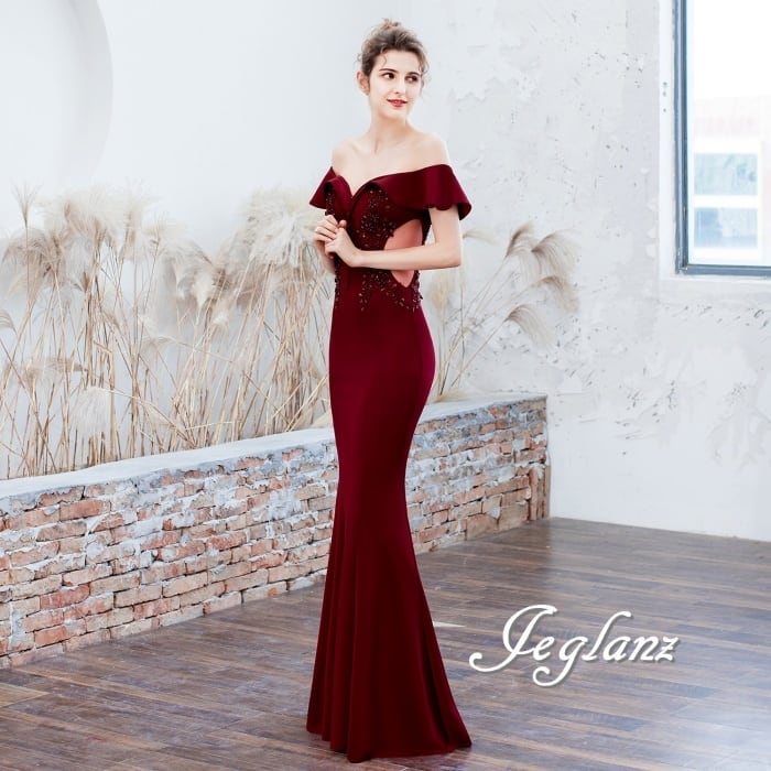 美ライン パーティ イブニングドレス カットアウト オフショル 肌見せ 6色(M8567)ζ