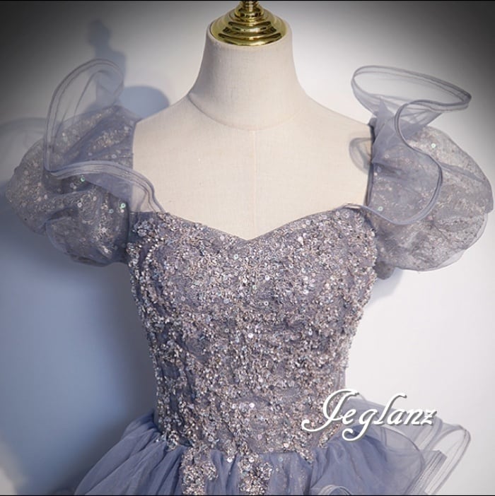 華やか パーティ イブニングドレス 背中 編み上げ ラメ 光沢感( M8671)ζ