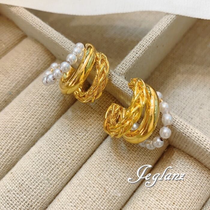 上品 スタッド式 ピアス パール フープピアス ゴールド ( M8675)θ