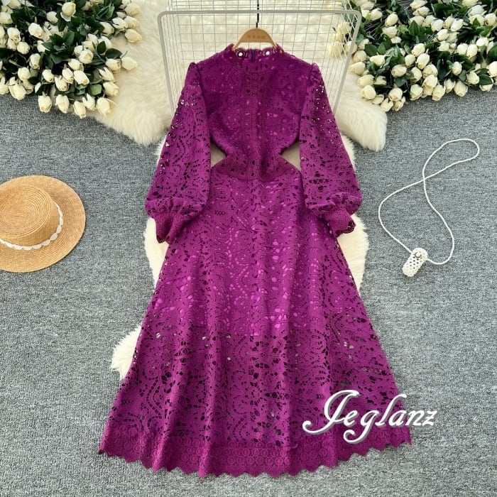 透かし彫り ワンピース ドレス レース 透け感 エターナル 4色(M8700)ζ