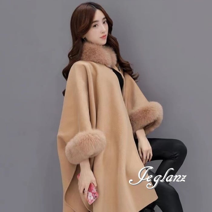 3色 ケープ コート ポンチョ マント コート ファー付き エレ派 (M8722)υ