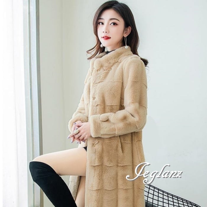 3色 ミドル丈 ファーコート エコファー 冬 スタンドカラー 大きいサイズ(M8726)φ