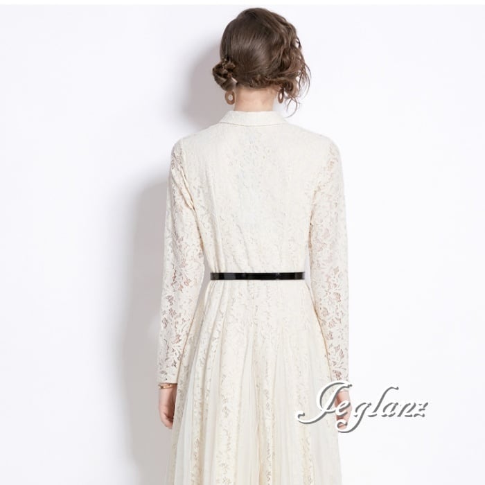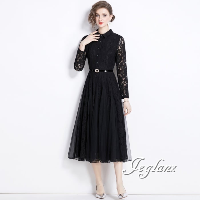 2色 レース 刺繍 シャツ ワンピース ドレス 切替 チュール きれいめ(M8766)ζ