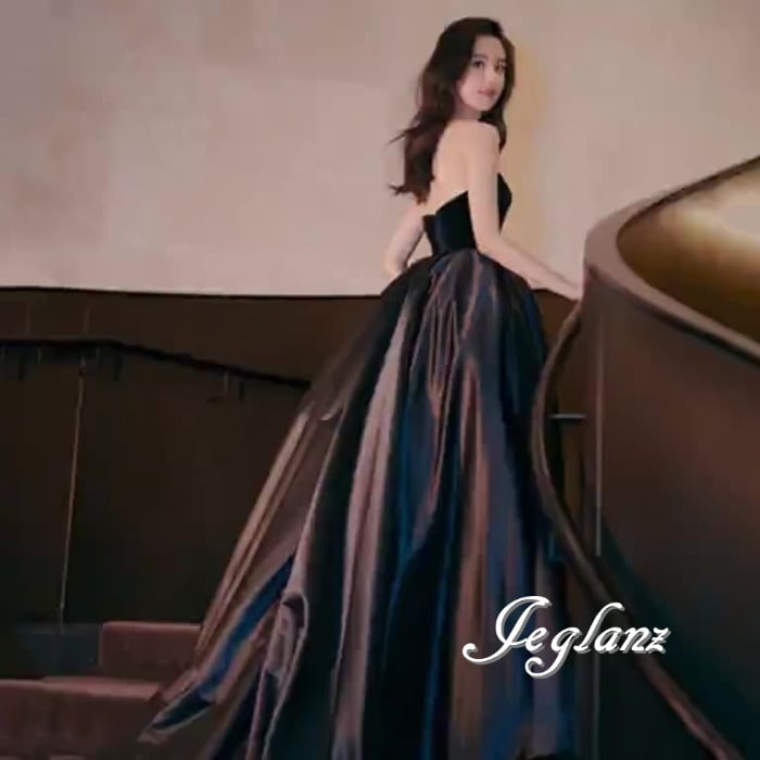 パーティ イブニングドレス ベアトップ 異素材 ベルベット調 光沢感 ♪(M8778)ζ