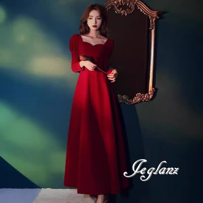 2色 パーティ マキシ丈 ワンピース ドレス ボリューム袖 クラシカル(M8785)ζ