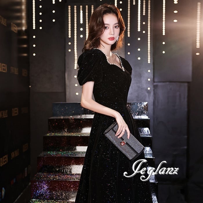 ベルベット調 イブニングドレス パール キラキラ ラメ 光沢感(M8829)π
