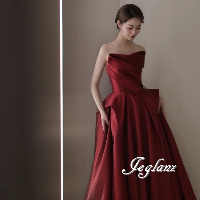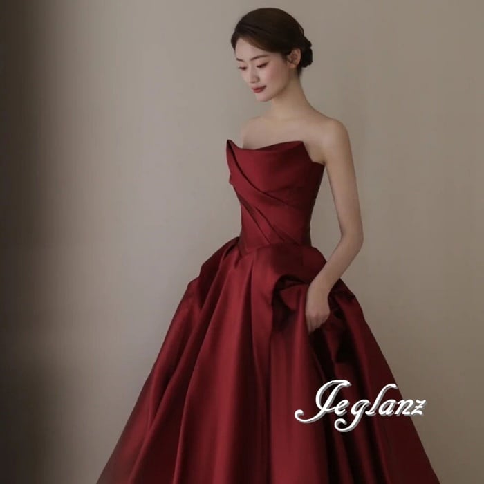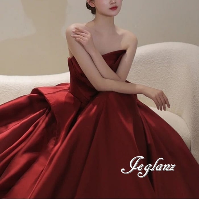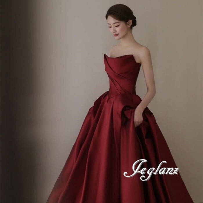 上品 サテン ウエディング カラードレス ベアトップ 光沢感 ♪(M8845)π