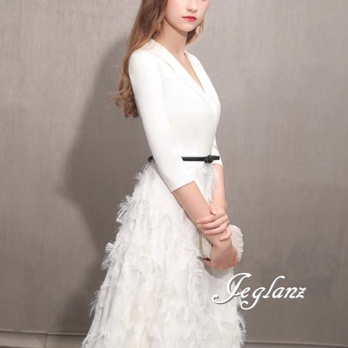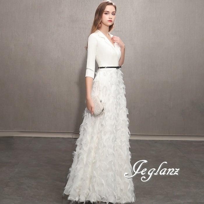 美ライン パーティイブニングドレス フェザードレス 7分袖 3色(M8858)ζ