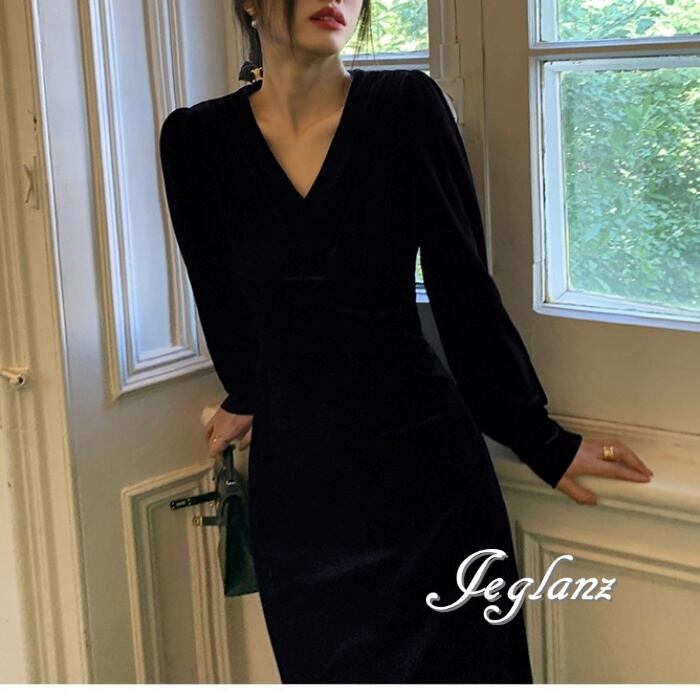 ベロア調の光沢が美しいワンピースドレス