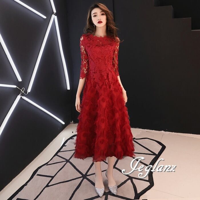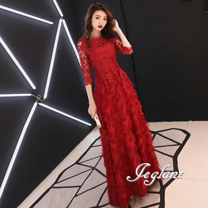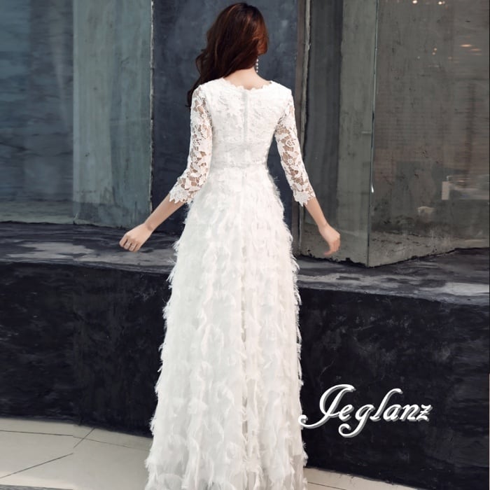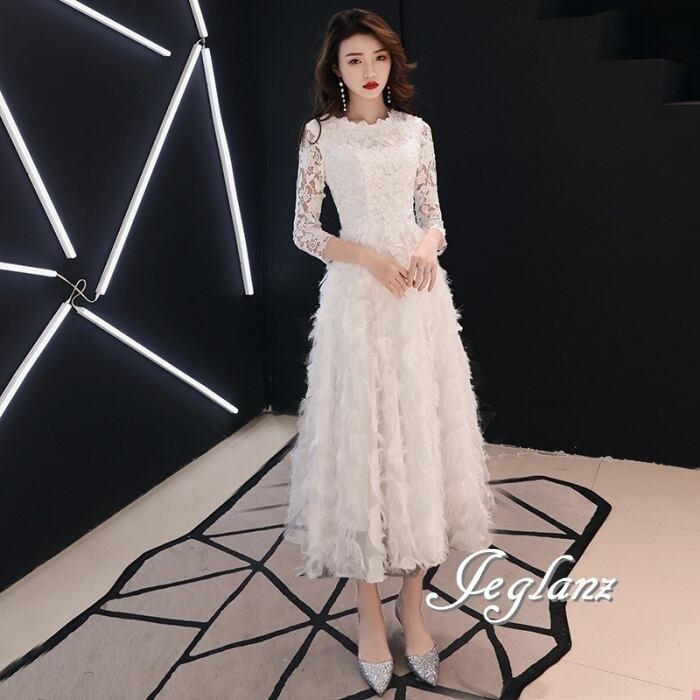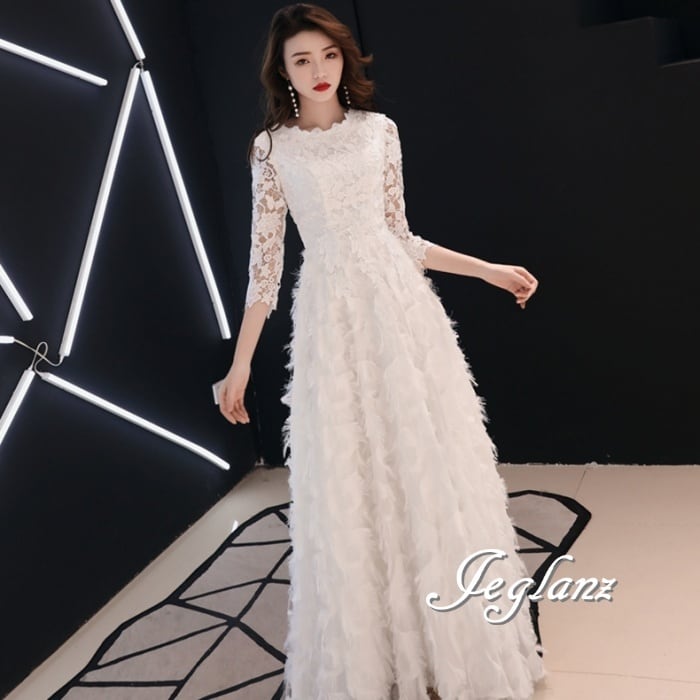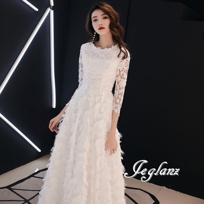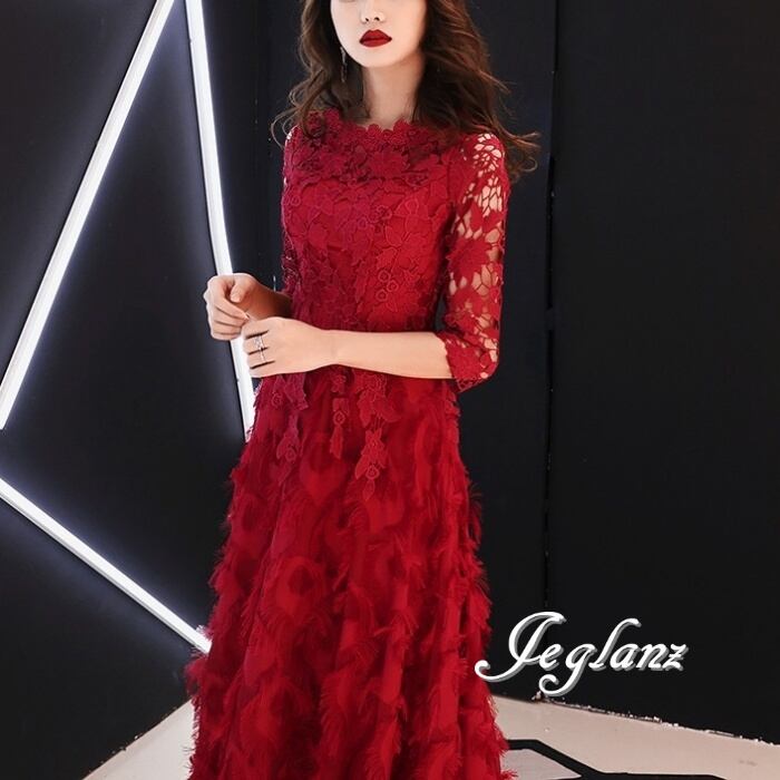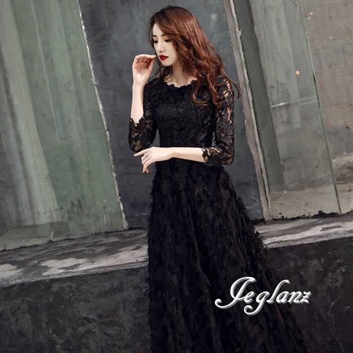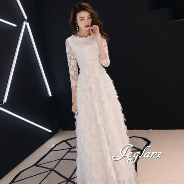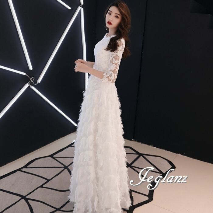 4色 パーティー フェザードレス レース 刺繍 ロング/イブニング(M8883)ζ