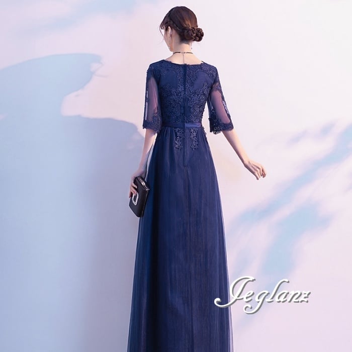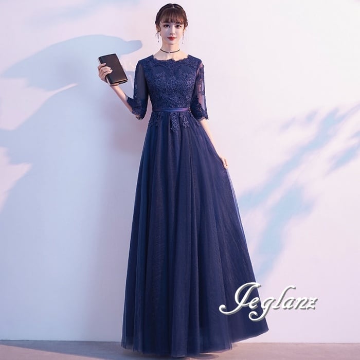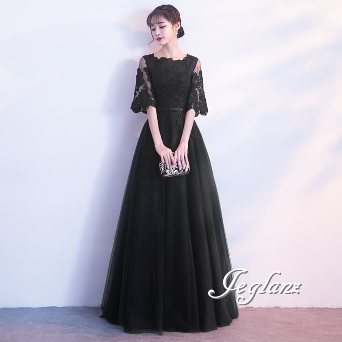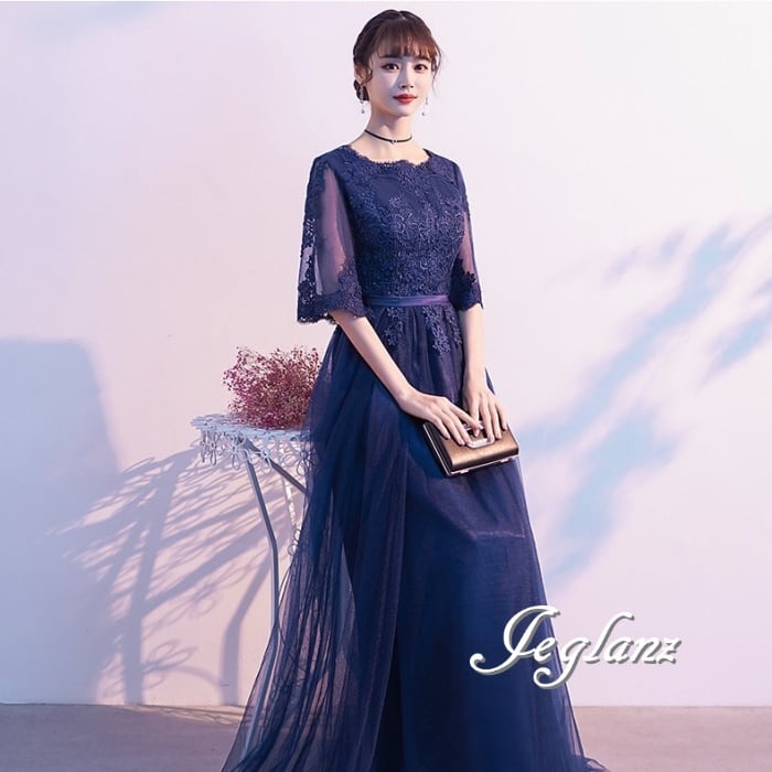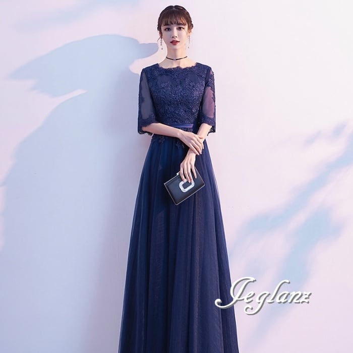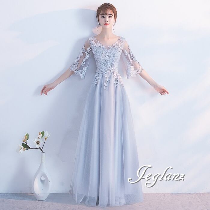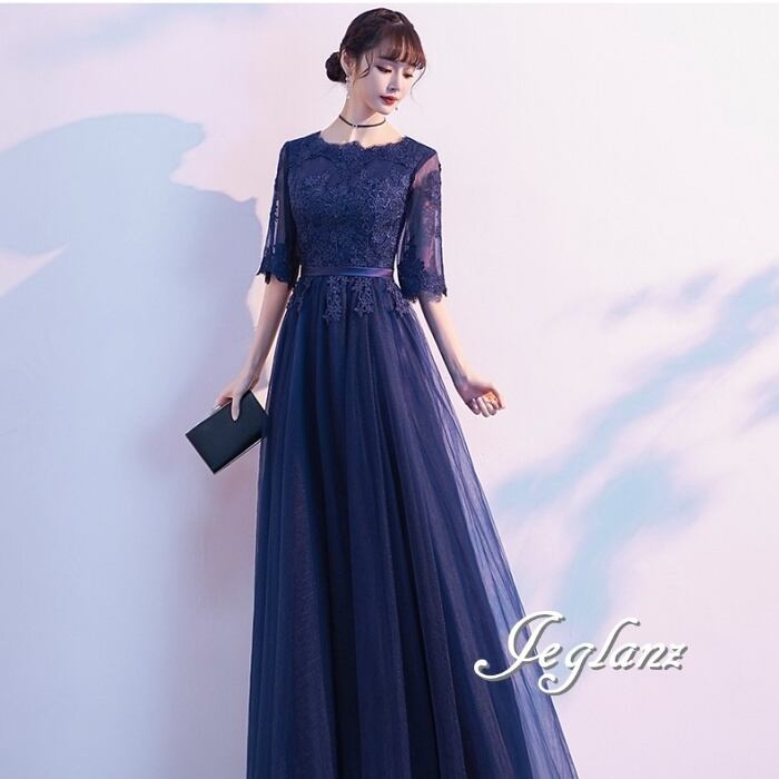 3色 パーティ イブニングドレス レース 刺繍 チュール スカート(M8908)ζ