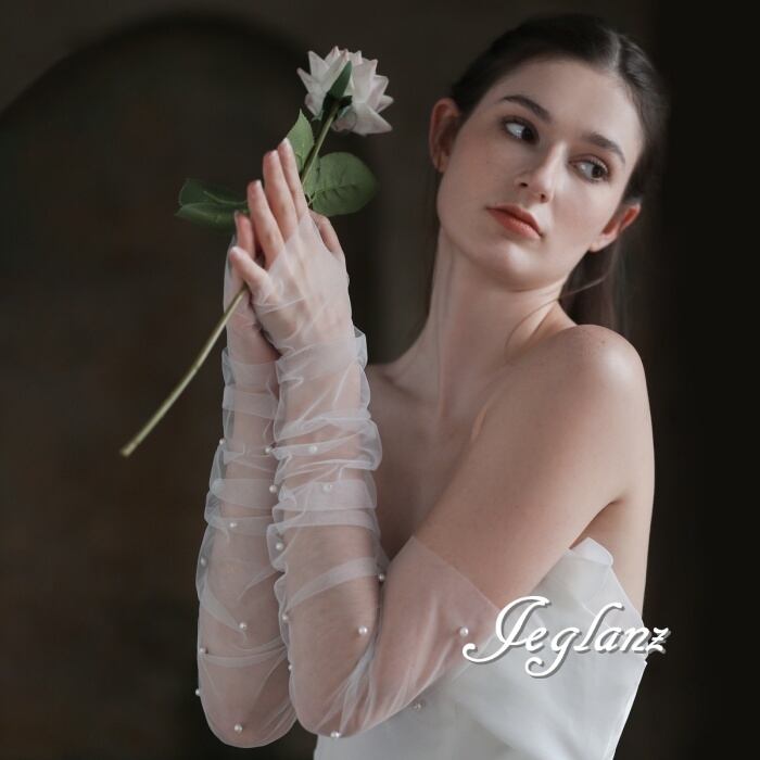 パール付き 手袋 ウエディング アクセサリー グローブ シアー感 (M8948)θ