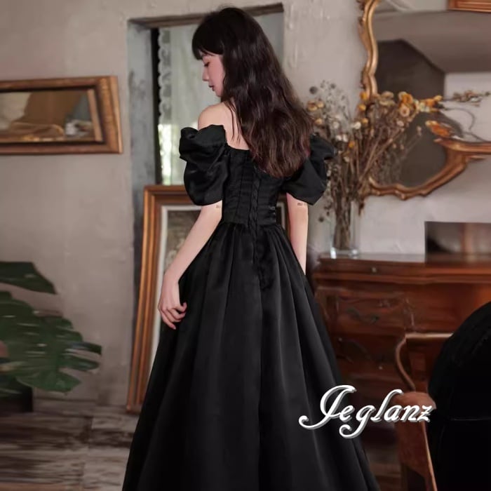 パーティ ブラックドレス スクエア 背中 編み上げ ロング/イブニング(M8962)ε