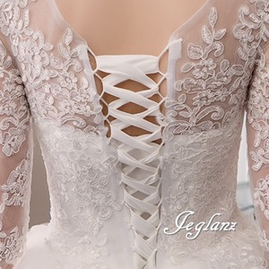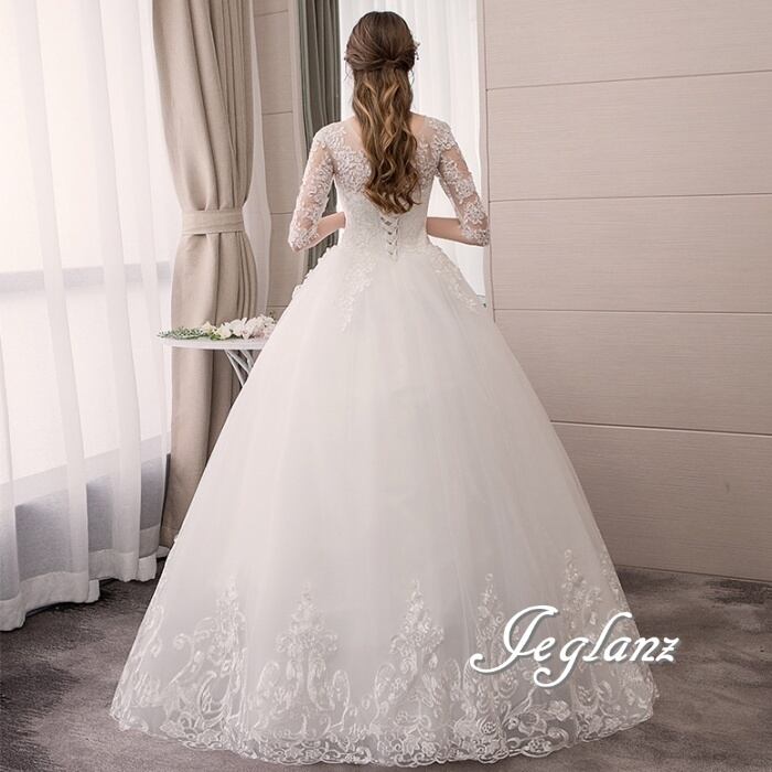 気品 ウエディングドレス ボリュームチュール 背中 編み上げ 7分袖(M8977)ο