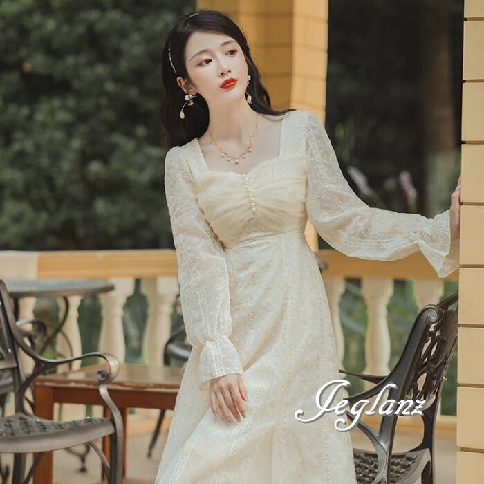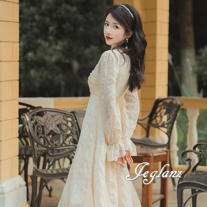 甘く清楚な印象を与えるボリューム袖のワンピースドレス
