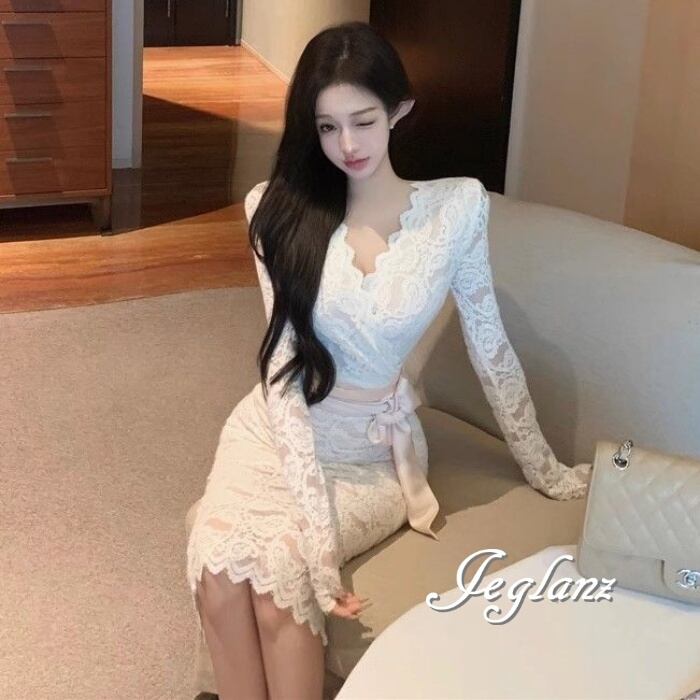 どの角度から見ても華やぎを感じる総レースのワンピース